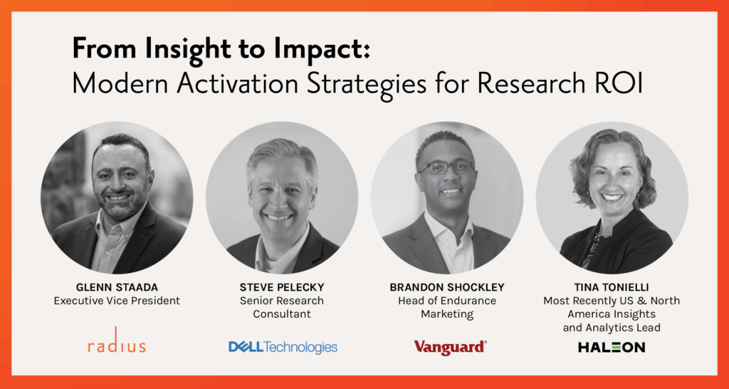 These themes were carried through in a session I hosted, From Insight to Impact: Modern Activation Strategies for Research ROI. Our panel was made up of three key brand-side insights leaders, Tina Tonielli, former Head of Insights and Analytics for North America at Haleon, Brandon Shockley, Head of Endurance Marketing at Vanguard, and Stephen Pelecky, Senior Research Consultant at Dell Technologies. During the panel, we examined how research moves beyond information-gathering to influence real business decisions.